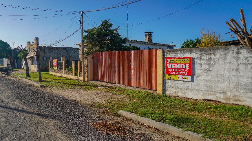 Superficie de 439 M² con 13,52 de frente, cercado con muros y portón de chapa en acceso.