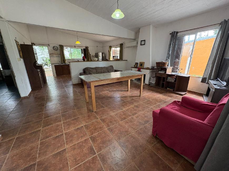 La casa dispone de dos dormitorios, amplia cocina comedor con estufa a leña, baño completo, fondo, parrillero, depósito con baño adicional, y alero para vehÃculo.